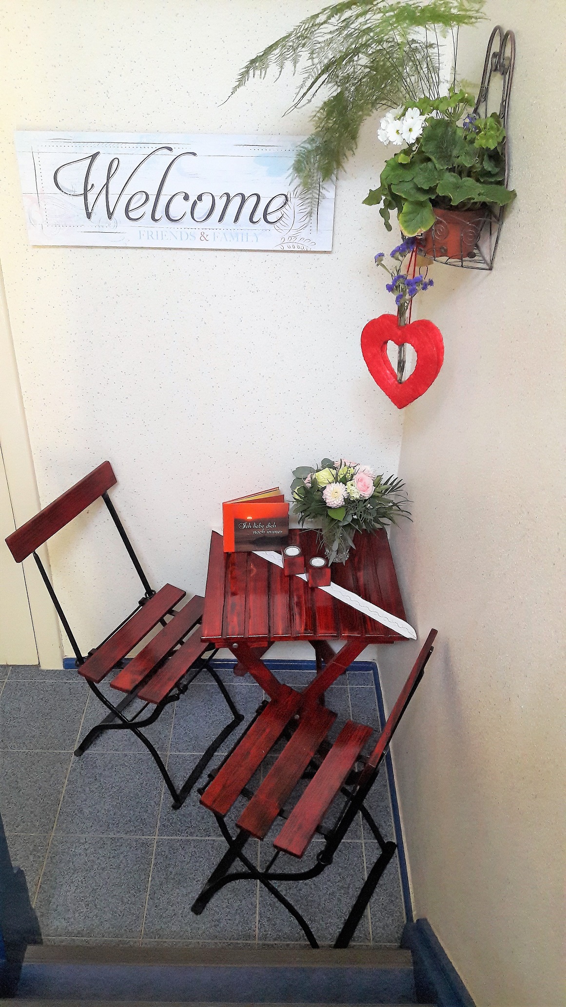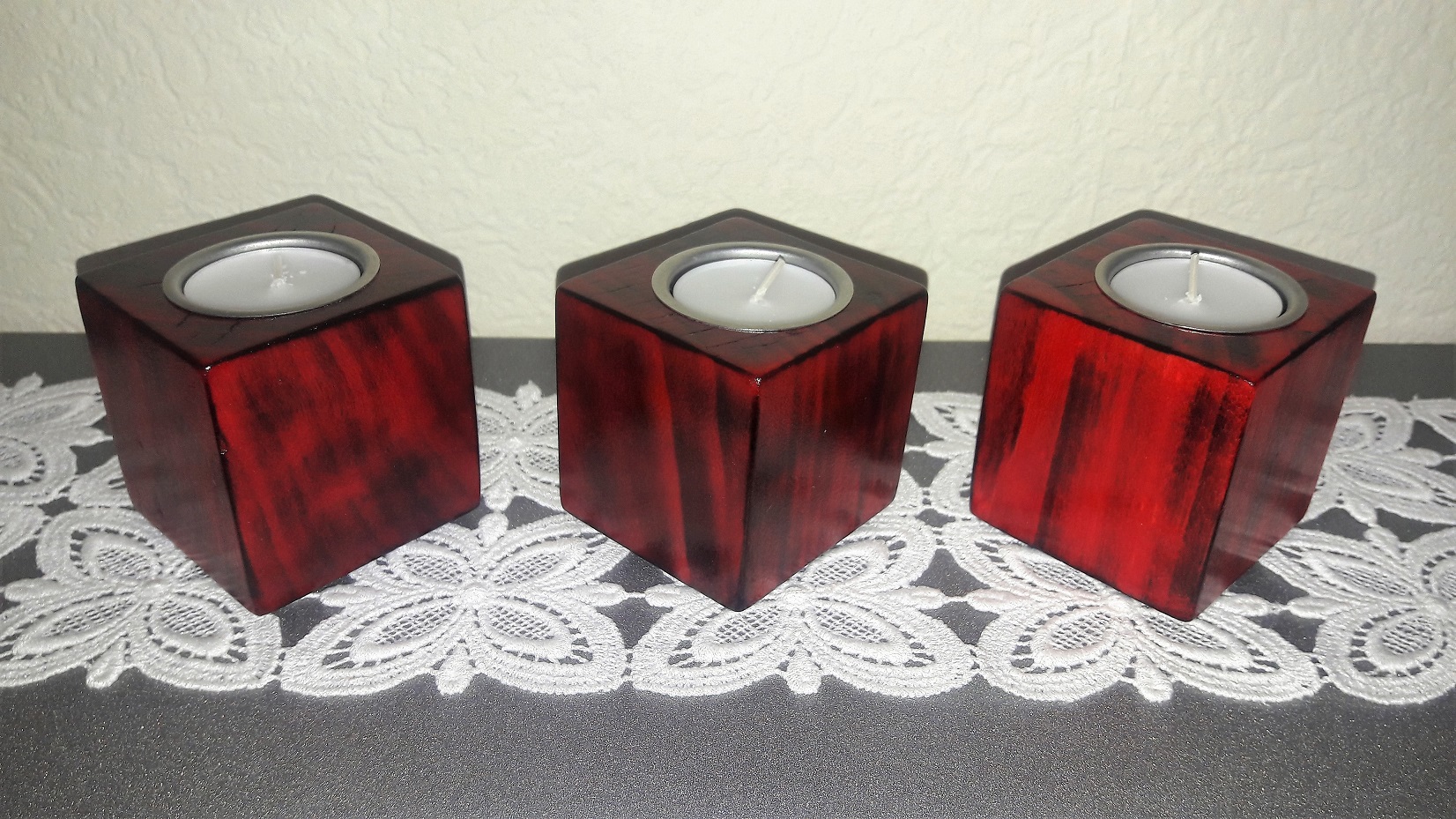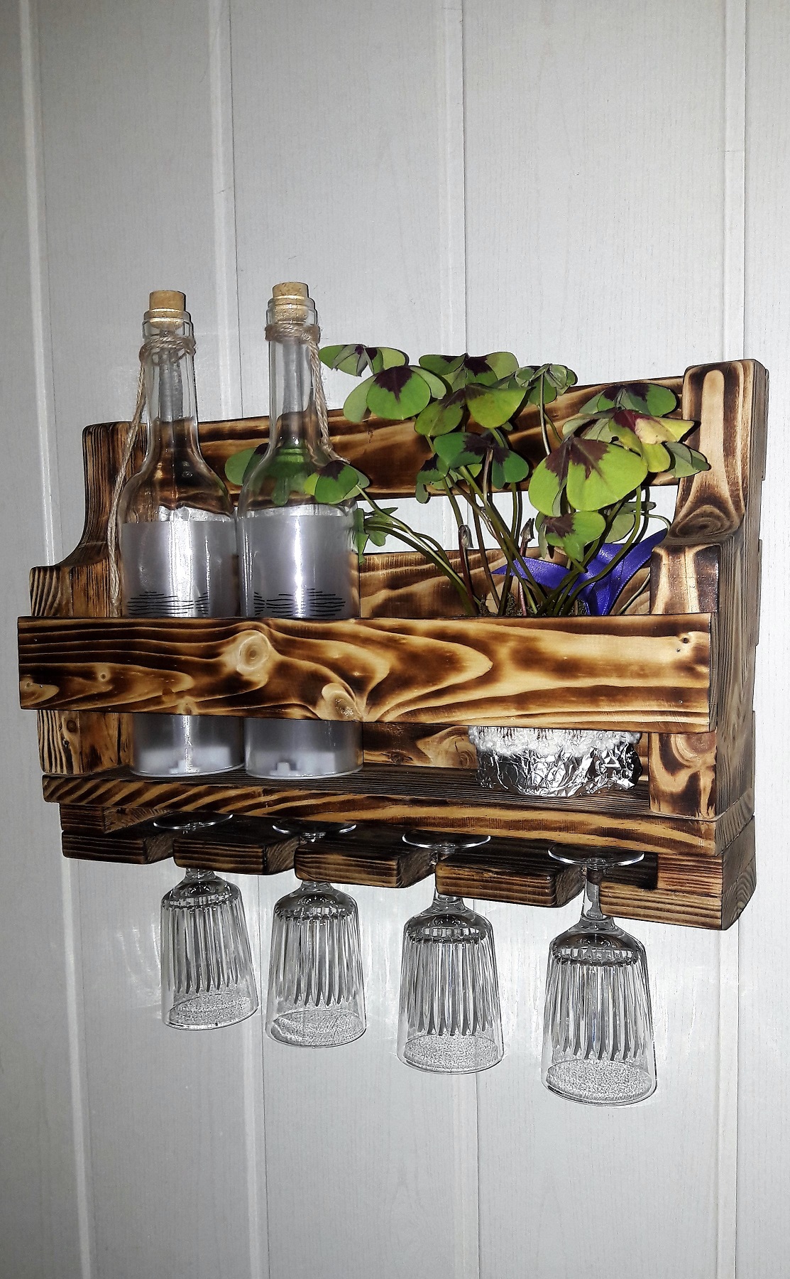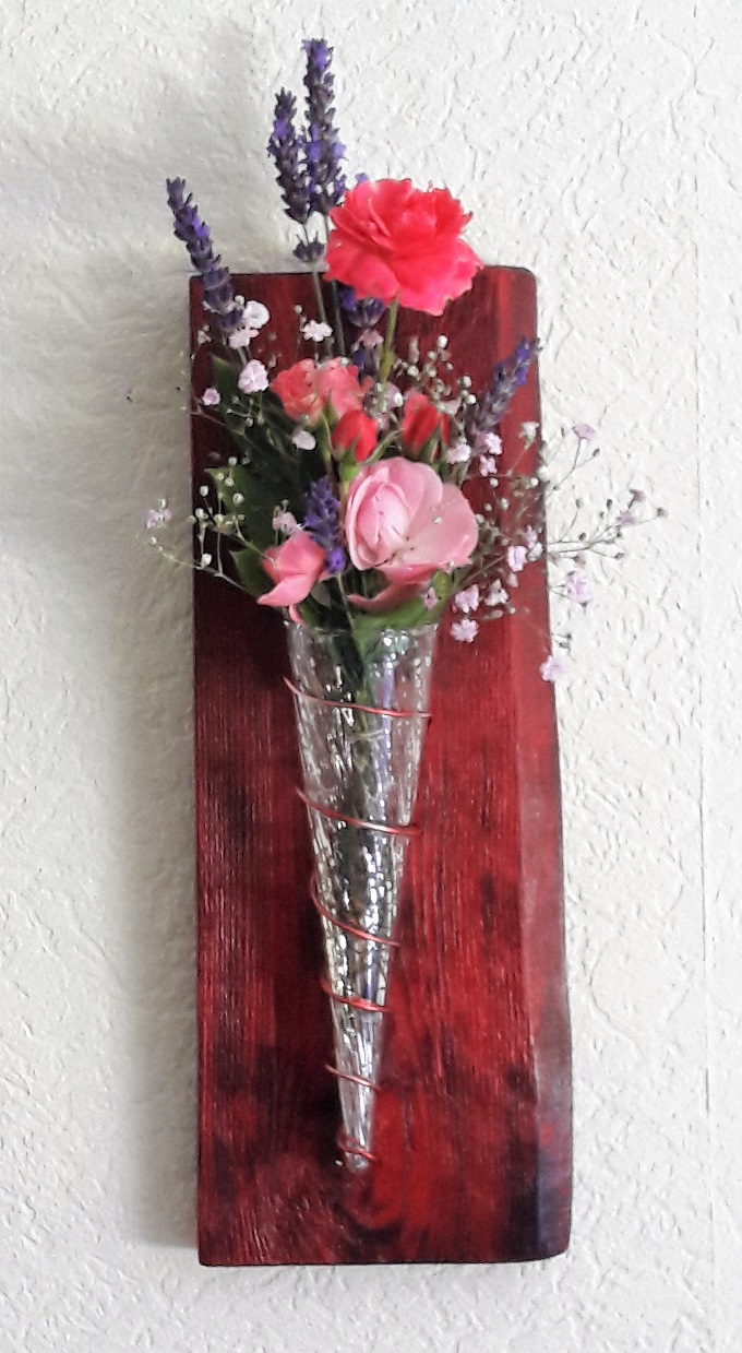 ![]() ![]() Auch die Teelichthalter und der Blumenhalter wurden aus alten Paletten gefertigt. |