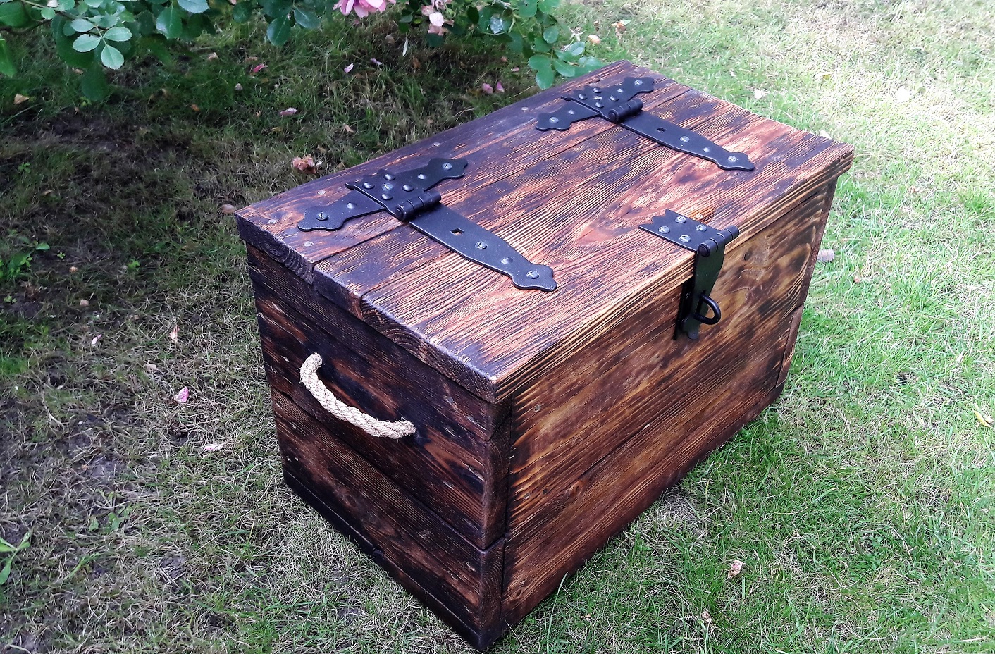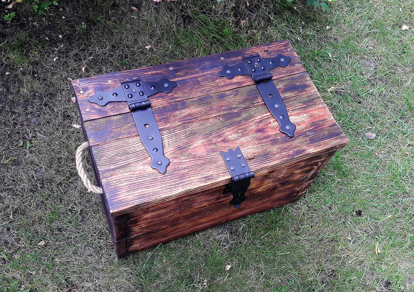 ![]() ![]() Holzkiste, Schatzkiste, Truhe mit Metallbeschläge |